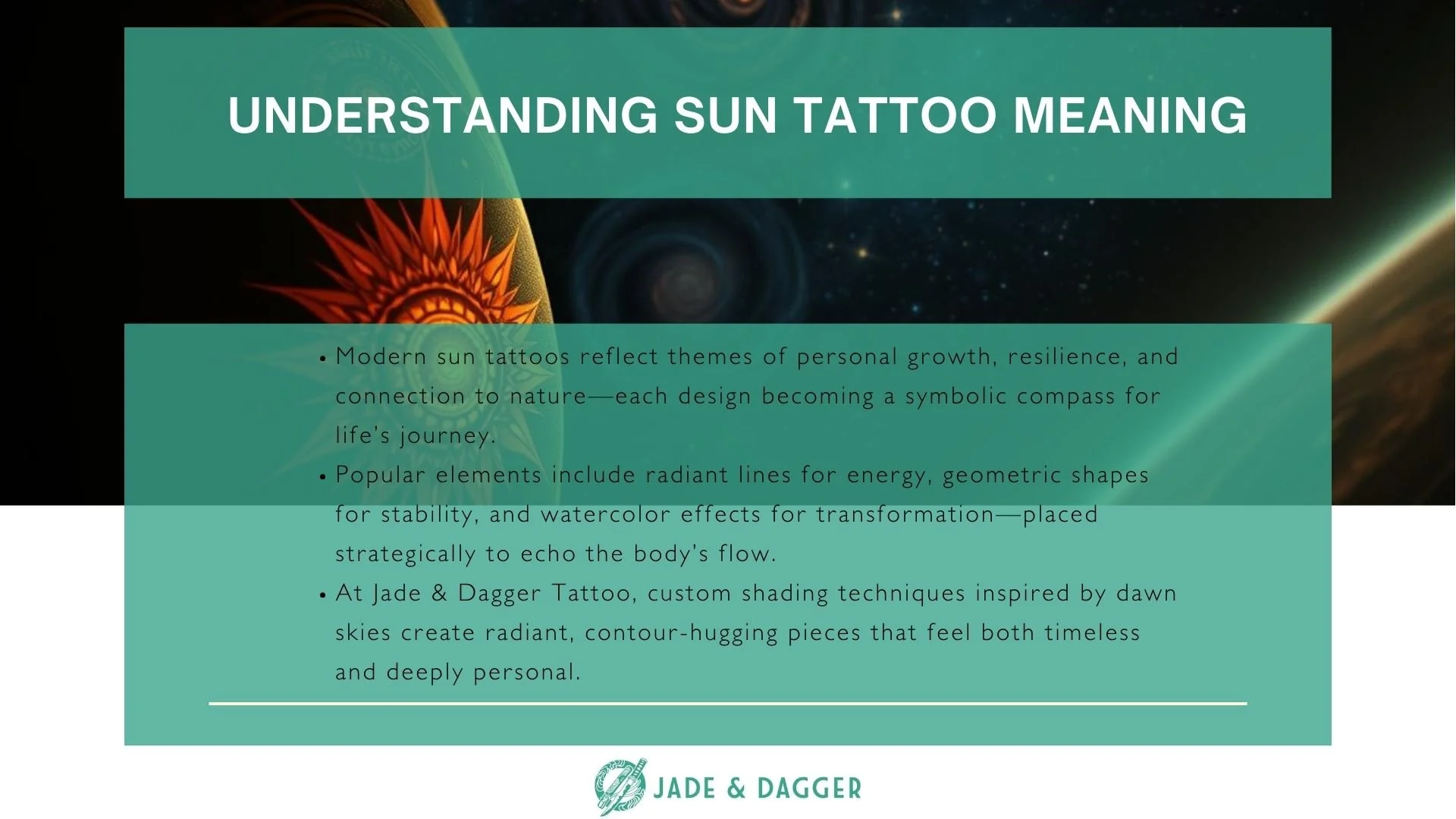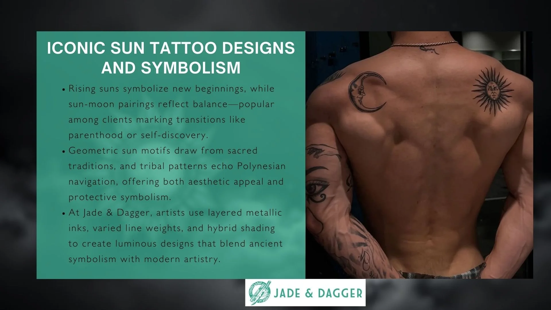 Explore Sun Tattoo Meaning & Artistry at Jade & Dagger Tattoo