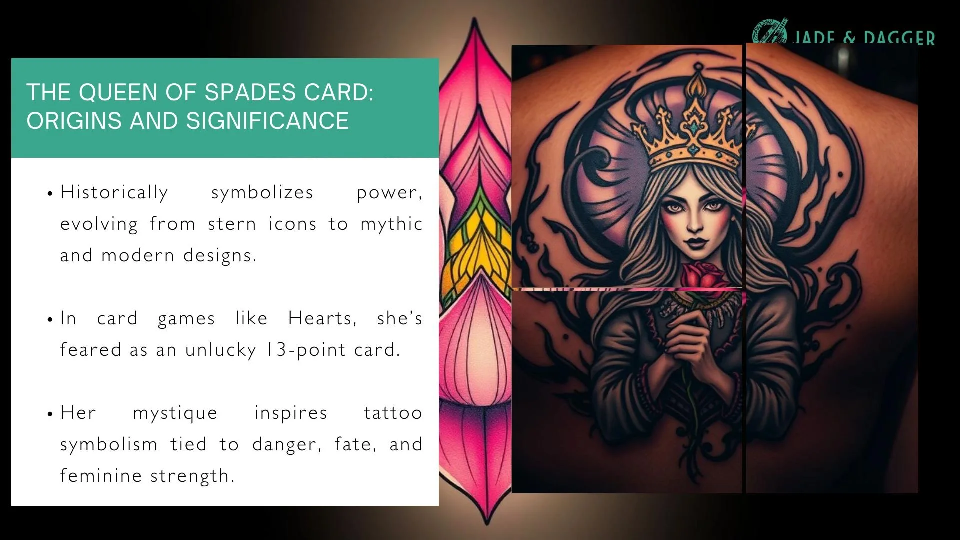 The Queen of Spades has a rich visual language, making it suitable for tattoo art.